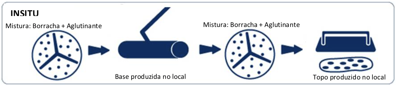 O pavimento contínuo é produzido no local, permitindo maior flexibilidade estética e técnica, podendo incluir camadas em SBR (pneu reciclado) e acabamentos em EPDM ou borracha reciclada, consoante a aplicação.